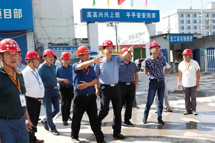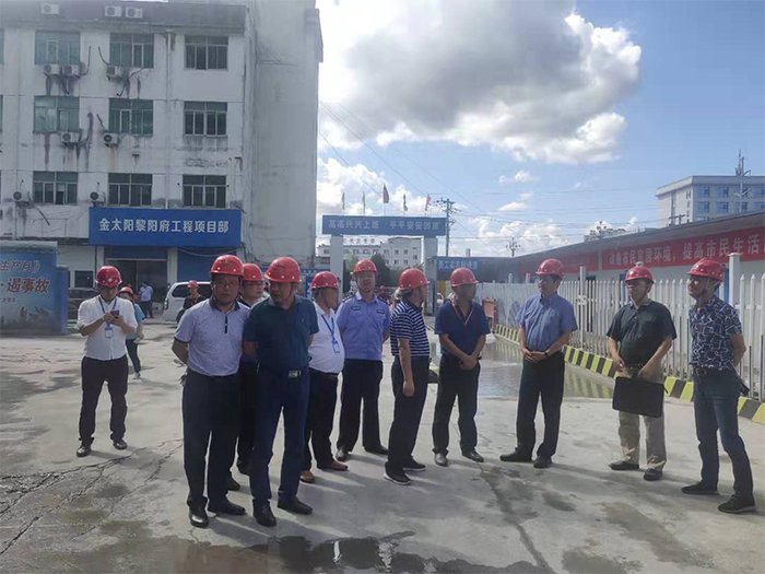 金秋时节,丹桂飘香。二〇一九年九月六日下午,黄山市人民政府副秘书长程亚东及市生态环境局、市公安局、市交通运输局等有关部门主要领导在市住房城乡建设局副局长徐树红、建管处副主任张先波的陪同下,风尘仆仆莅临黄山市建工集团承建的金太阳黎阳宸府项目工地考察调研。