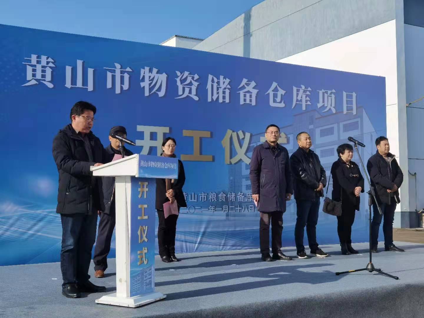 2021年1月28日上午9:30,黄山市物资储备库项目开工奠基活动在九龙工业园区项目地举行,省粮食和物资储备局物资和能源储备处处长孙安庆、四级调研员何薇、市发展改革委(市粮食储备局)主任(局长)丁士礼、建设单位主要负责人、乐鱼官网注册-乐鱼(中国) 总经理叶金发等相关单位负责人参加了奠基仪式。