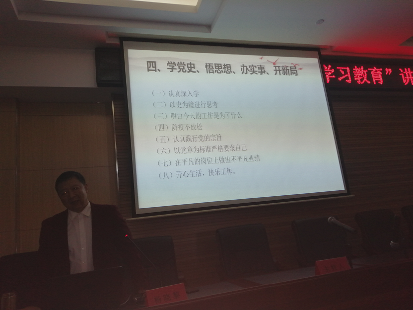 动员结束后,紧接着由市委党校杨晓黎教授为我们作了精彩的“党史学习教育”专题报告。杨教授为我们解读了中国共产党由诞生、发展、壮大到建立新中国,以及带领全国人民建设小康社会艰难而辉煌的革命历程。同时杨教授也结合自己对党史的研究体会,以丰富的史实、鲜明的观点、精辟的语言,向我们阐述了中国共产党100年艰苦卓绝的风雨历程,总结出没有共产党就没有新中国的伟大真理。报告深入浅出、内容丰富,对我们加强党的历史和思想政治理论学习,进一步提高党性修养,具有很强的理论指导作用。报告很受教育,很受启发,收获很大。会议最后,集团总支副书记汪明星要求广大党员干部认真学习领会,掌握实质,以饱满的工作热情和扎实的工作作风,认真履行职责,努力工作,为公司的发展壮大贡献力量。