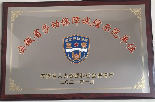 公司荣获“安徽省劳动保障诚信示范单位”荣誉称号