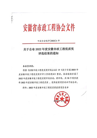 根据《安徽市政工程优质奖评选办法》和《关于开展2022年度安徽市政工程优质奖评审工作的通知》要求,安徽省市政工程协会组织开展了2022年度安徽市政工程优质奖评选活动。乐鱼官网注册-乐鱼(中国)