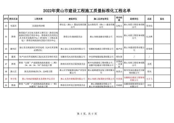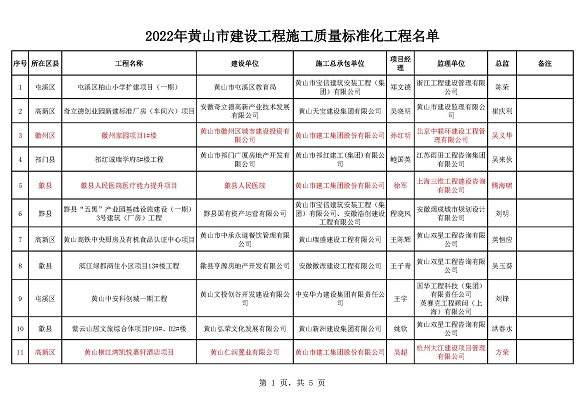 承建的徽州家园项目、歙县人民医院医疗能力提升项目、黄山横江湾凯悦酒店项目、高铁黟县东站站前广场及附属配套工程、黄山市南部城镇群水务调度中心项目、黄山北海路公交综合大楼工程荣获2022年施工质量标准化工程和安全生产标准化工地的殊荣。