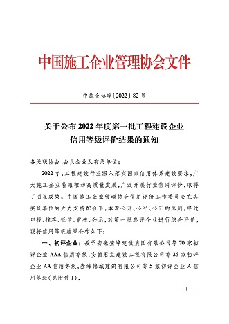 再次荣获施工企业最高信用评级“AAA级企业信用证书”。这是对乐鱼官网注册-乐鱼(中国)